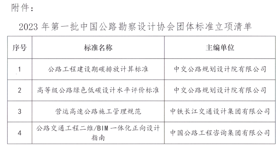 近期,協(xié)會標準化管理委員會按《中國公路勘察設(shè)計協(xié)會團體標準管理辦法》(試行),對申請編制中國公路勘察設(shè)計協(xié)會團體標準的項目進行了符合性審查和立項評審。與會專家同意以下4項協(xié)會團體標準的立項申請,同意立項。