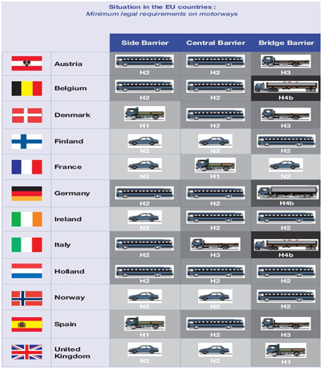 ? 圖1??歐盟高速公路上設(shè)置護欄的最小法定防護等級