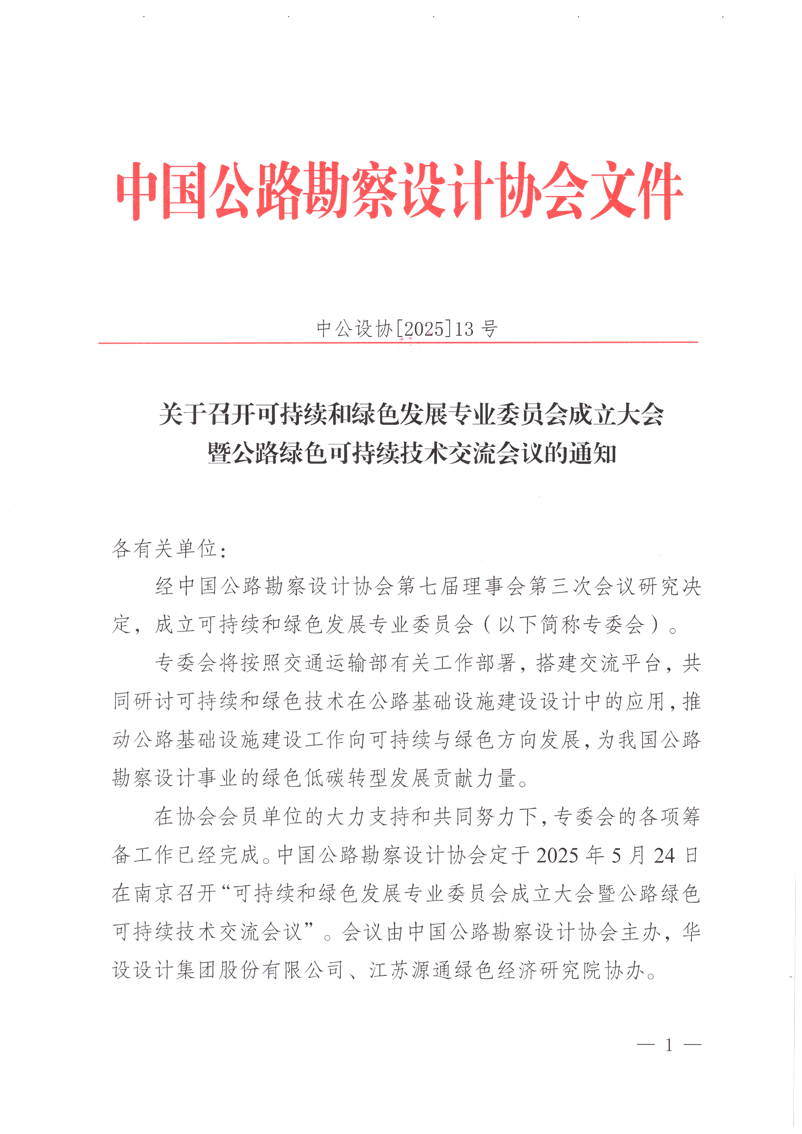 關(guān)于召開(kāi)可持續(xù)和綠色發(fā)展專業(yè)委員會(huì)成立大會(huì)暨公路綠色可持續(xù)技術(shù)交流會(huì)議的通知